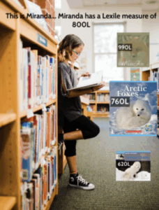 Books about your child’s interests that are within their ability range will be motivating for your child. Lexile Find a Book is a free resource that personalizes reading for your child by helping you do just that! For instance, in the example below, Miranda has a Lexile measure of 800L and would like to read about foxes. “Arctic Foxes” (in the middle) at 760L would be a reading choice that would not frustrate her and would help develop her reading ability. She might enjoy reading a different “Arctic Foxes” book (at left) at 620L just for fun. If she was highly motivated to read about foxes, she might enjoy a reading challenge with “Wild Fox” at 990L.